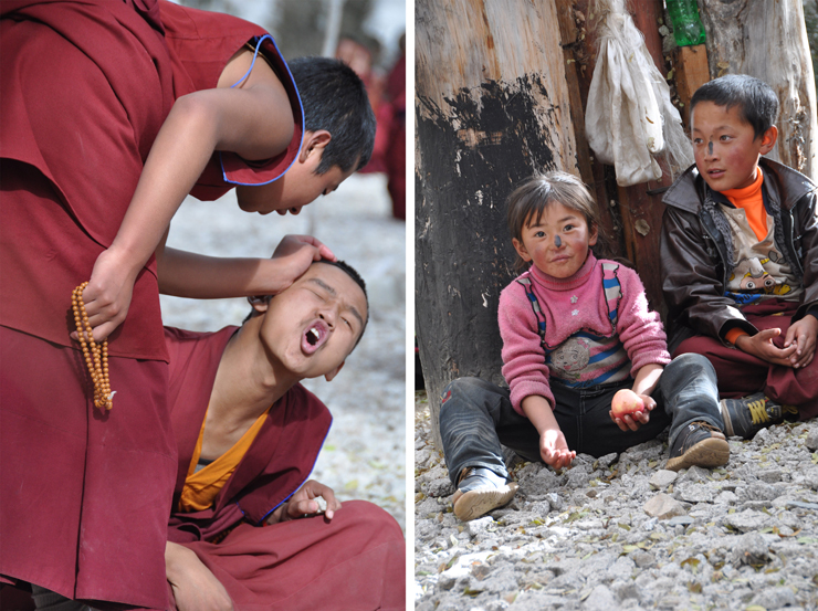 On peux y admirer des mandalas de sables, des enfants avec des taches de suie sur le nez (pour les aider à dormir la nuit) et des moines en plein débat.