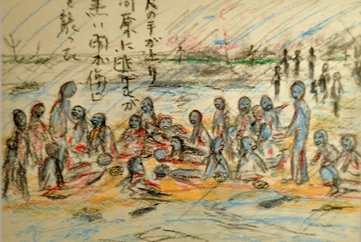 I headed for the Otagawa River in serious condition due to the A-bombing. It was a brutal spectacle. Suddenly, black rain started falling.